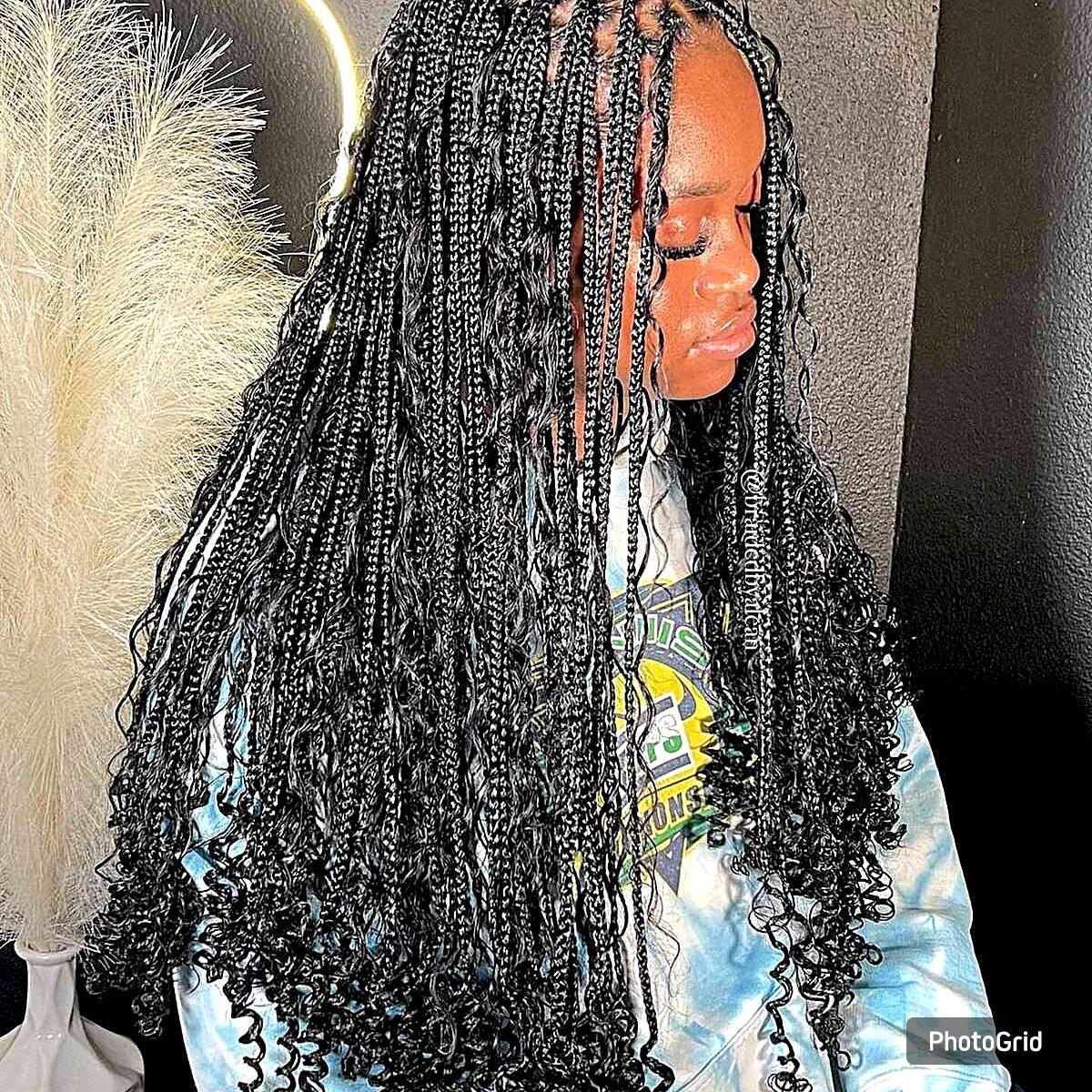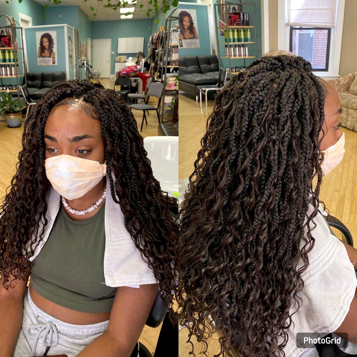Achieve a soft, free-spirited look with our bohemian braids. Featuring a blend of braids and loose curls, this style offers a relaxed yet elegant finish suitable for any occasion.