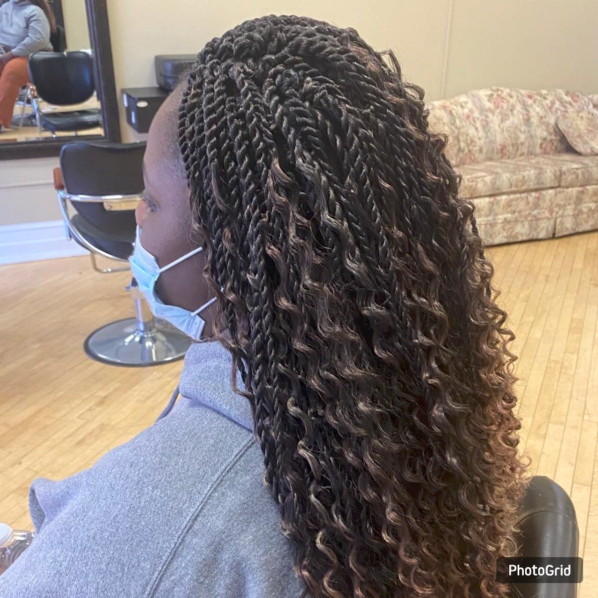 Achieve a sleek and refined appearance with our Senegalese twists. This lightweight, protective style offers durability, elegance, and easy maintenance.