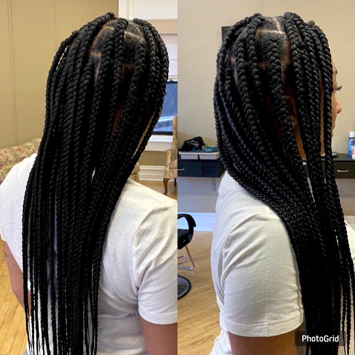 Classic and versatile, our box braids are crafted for durability and style. This protective look enhances your natural beauty while offering multiple styling options.